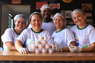 Alunos ajudando na produção da geleia de pimenta